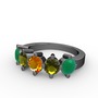 Sitrin, peridot ve kök zümrüt 925 ayar siyah rodyum kaplama gümüş yüzük