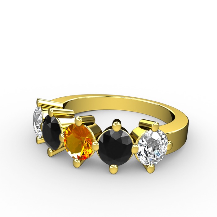 Sitrin, siyah zirkon ve beyaz zirkon 8 ayar altın yüzük