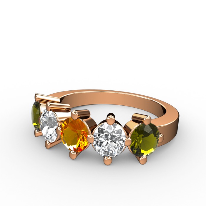Sitrin, swarovski ve peridot 8 ayar rose altın yüzük