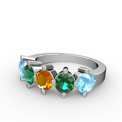 Sitrin, yeşil kuvars ve akuamarin 8 ayar beyaz altın yüzük