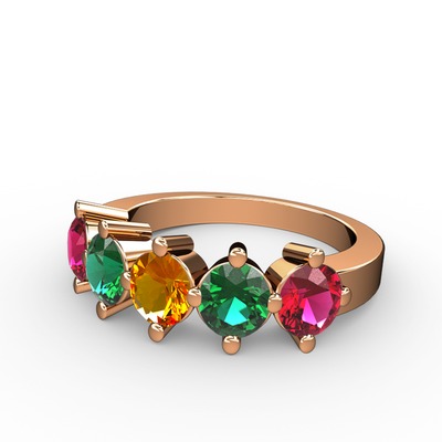 Sitrin, yeşil kuvars ve rodolit garnet 8 ayar rose altın yüzük