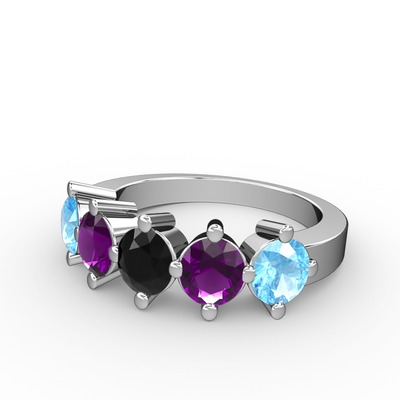 Siyah zirkon, ametist ve akuamarin 14 ayar beyaz altın yüzük