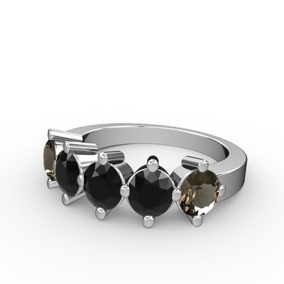 Siyah zirkon ve dumanlı kuvars 925 ayar gümüş yüzük