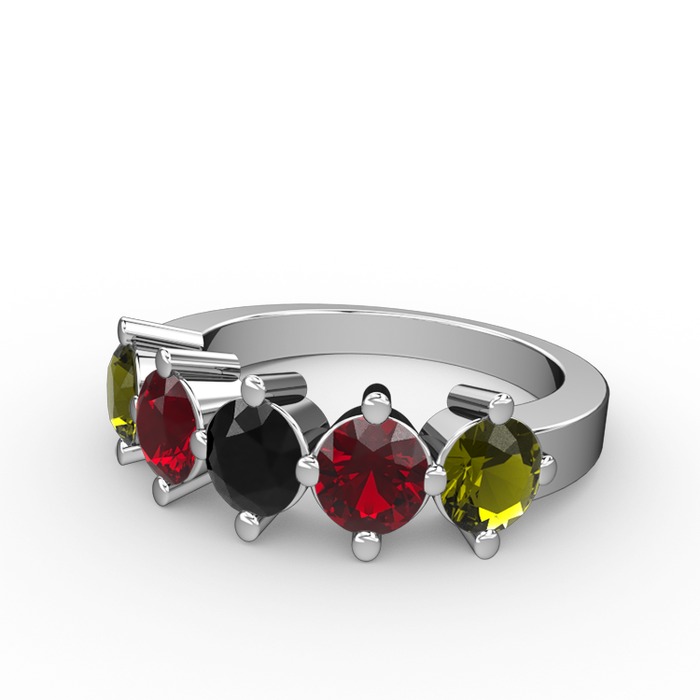 Siyah zirkon, garnet ve peridot 8 ayar beyaz altın yüzük