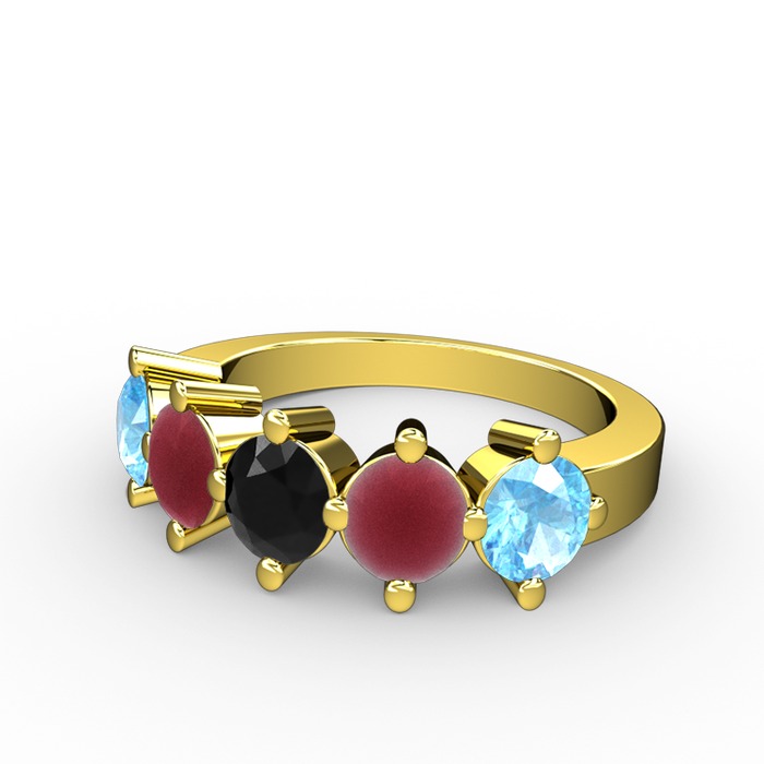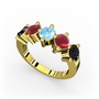 Siyah zirkon, kök yakut ve akuamarin 925 ayar altın kaplama gümüş yüzük
