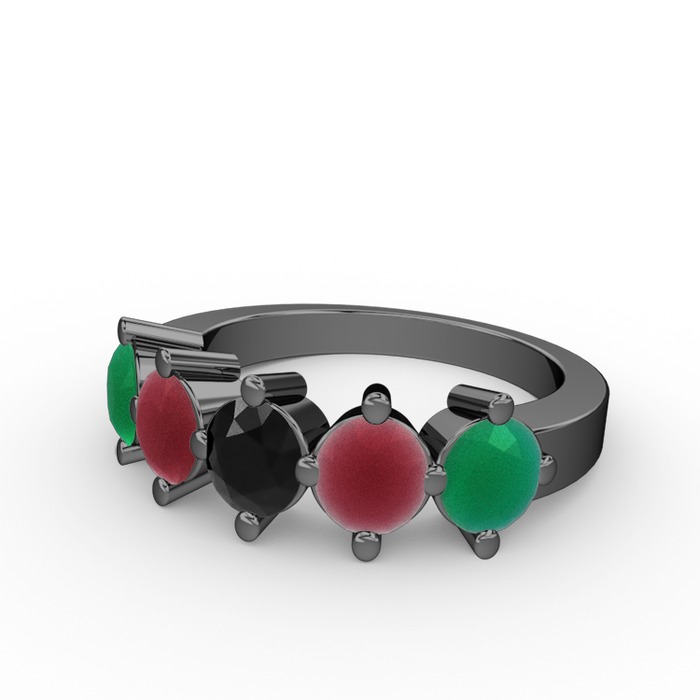 Siyah zirkon, kök yakut ve kök zümrüt 925 ayar siyah rodyum kaplama gümüş yüzük
