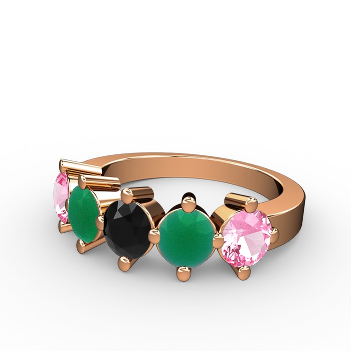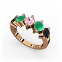 Siyah zirkon, kök zümrüt ve pembe kuvars 18 ayar rose altın yüzük