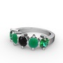 Siyah zirkon, kök zümrüt ve yeşil kuvars 8 ayar beyaz altın yüzük