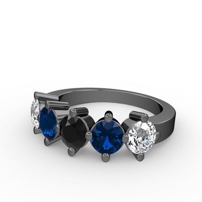 Siyah zirkon, lab safir ve beyaz zirkon 925 ayar siyah rodyum kaplama gümüş yüzük