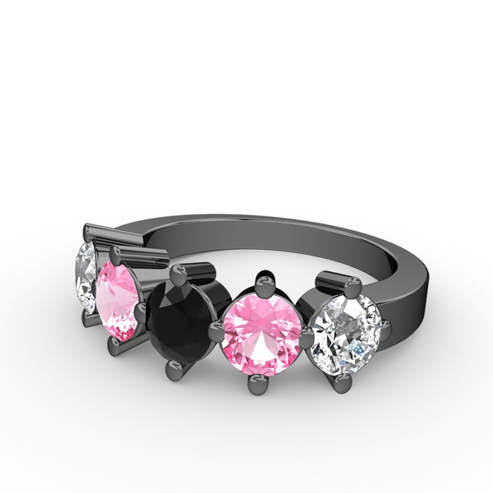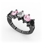 Siyah zirkon, pembe kuvars ve beyaz zirkon 925 ayar siyah rodyum kaplama gümüş yüzük