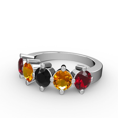 Siyah zirkon, sitrin ve garnet 14 ayar beyaz altın yüzük