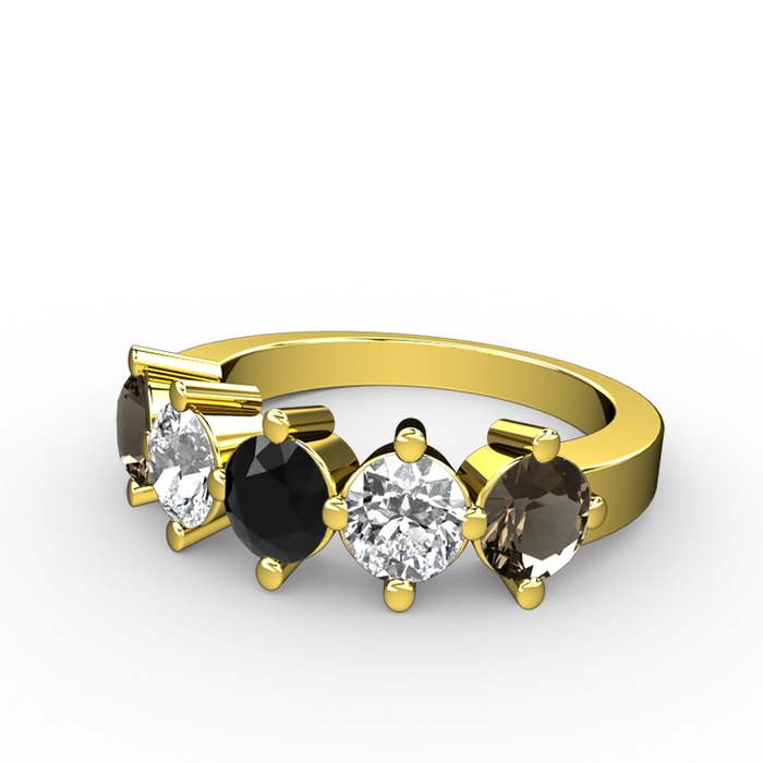 Siyah zirkon, swarovski ve dumanlı kuvars 18 ayar altın yüzük