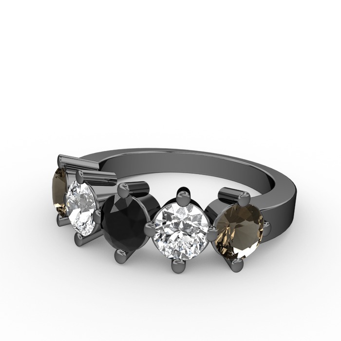 Siyah zirkon, swarovski ve dumanlı kuvars 925 ayar siyah rodyum kaplama gümüş yüzük