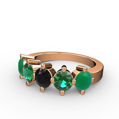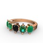 Siyah zirkon, yeşil kuvars ve kök zümrüt 18 ayar rose altın yüzük