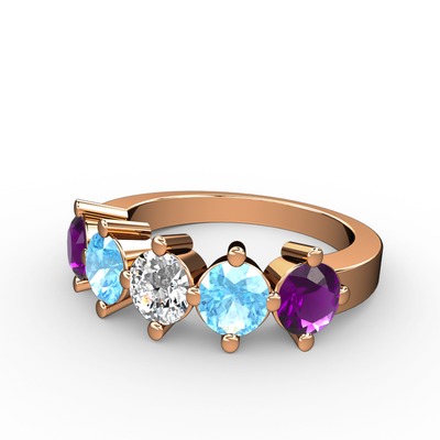 Swarovski, akuamarin ve ametist 14 ayar rose altın yüzük