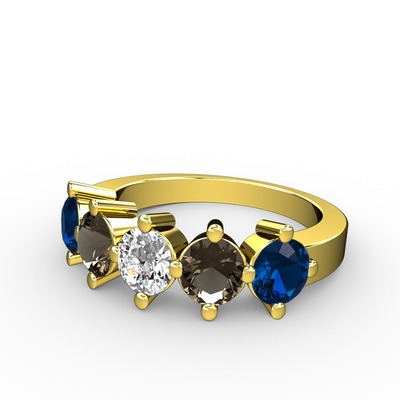 Swarovski, dumanlı kuvars ve lab safir 18 ayar altın yüzük