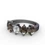 Swarovski ve dumanlı kuvars 925 ayar siyah rodyum kaplama gümüş yüzük
