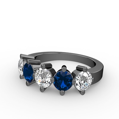 Swarovski, lab safir ve pırlanta 925 ayar siyah rodyum kaplama gümüş yüzük (1.32 karat)
