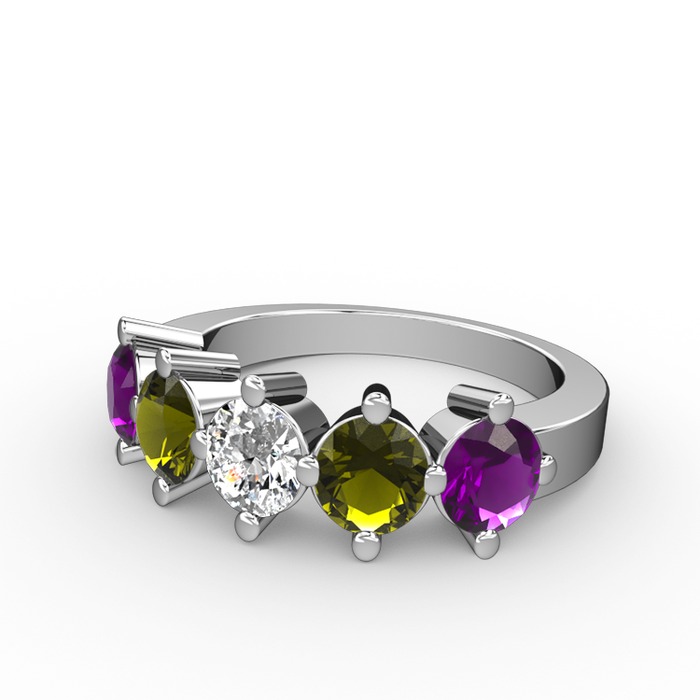 Swarovski, peridot ve ametist 925 ayar gümüş yüzük