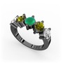 Swarovski, peridot ve kök zümrüt 925 ayar siyah rodyum kaplama gümüş yüzük