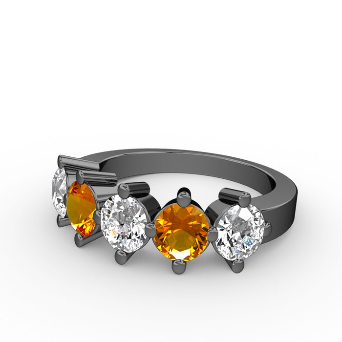 Swarovski ve sitrin 925 ayar siyah rodyum kaplama gümüş yüzük