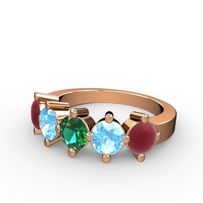 Yeşil kuvars, akuamarin ve kök yakut 14 ayar rose altın yüzük