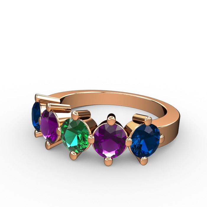 Yeşil kuvars, ametist ve lab safir 925 ayar rose altın kaplama gümüş yüzük