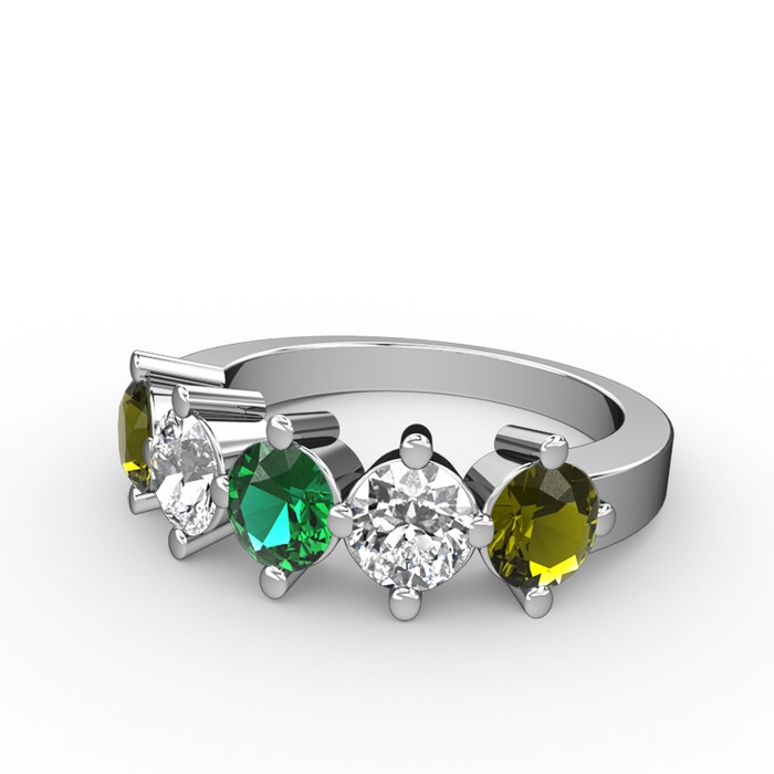 Yeşil kuvars, beyaz zirkon ve peridot 925 ayar gümüş yüzük