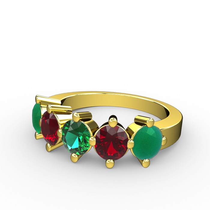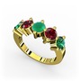 Yeşil kuvars, garnet ve kök zümrüt 18 ayar altın yüzük