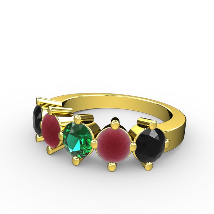Yeşil kuvars, kök yakut ve siyah zirkon 8 ayar altın yüzük