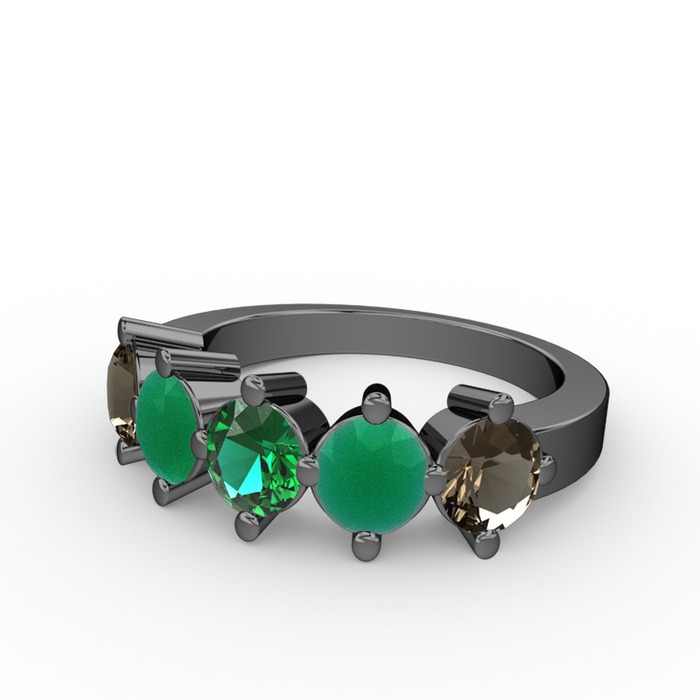 Yeşil kuvars, kök zümrüt ve dumanlı kuvars 925 ayar siyah rodyum kaplama gümüş yüzük