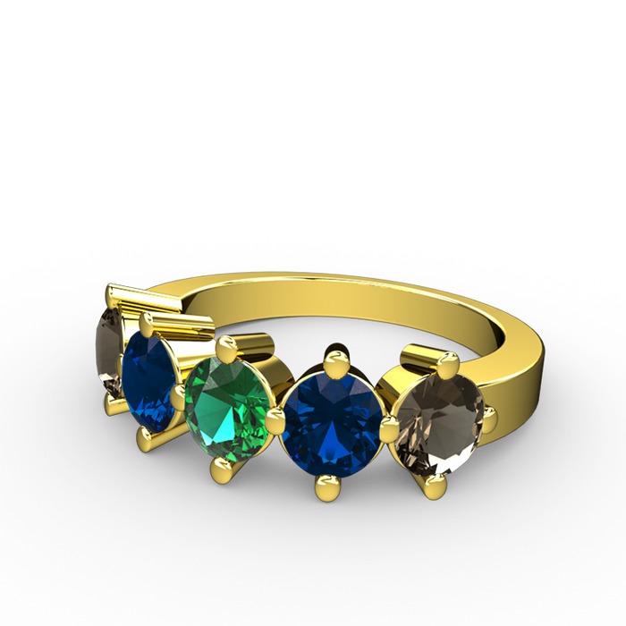 Yeşil kuvars, lab safir ve dumanlı kuvars 8 ayar altın yüzük