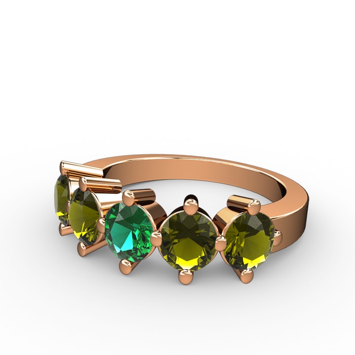 Yeşil kuvars ve peridot 14 ayar rose altın yüzük