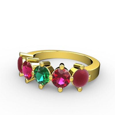 Yeşil kuvars, rodolit garnet ve kök yakut 8 ayar altın yüzük