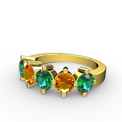 Yeşil kuvars ve sitrin 925 ayar altın kaplama gümüş yüzük