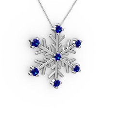 Lab safir ve swarovski 8 ayar beyaz altın kolye (40 cm beyaz altın rolo zincir)