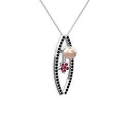 Rodolit garnet, yeşil kuvars ve pembe inci 8 ayar beyaz altın kolye (40 cm beyaz altın rolo zincir)