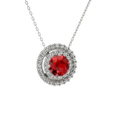 Kök yakut ve garnet 8 ayar beyaz altın kolye (40 cm beyaz altın rolo zincir)