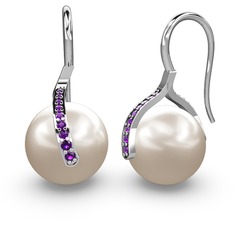 Ametist ve siyah zirkon 8 ayar beyaz altın küpe