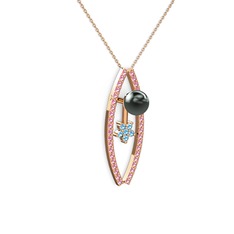 Siyah inci, ametist ve lab safir 8 ayar rose altın kolye (40 cm rose altın rolo zincir)