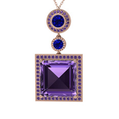 Ametist ve pırlanta 8 ayar rose altın kolye (0.704 karat, 40 cm rose altın rolo zincir)