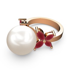 Siyah inci ve rodolit garnet 8 ayar rose altın yüzük