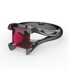 Rodolit garnet ve swarovski 925 ayar siyah rodyum kaplama gümüş yüzük