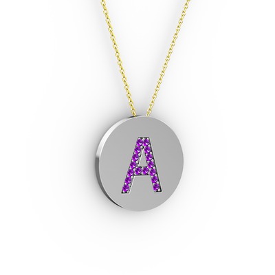 Ametist 18 ayar beyaz altın kolye (40 cm gümüş rolo zincir)