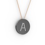 Beyaz zirkon 925 ayar siyah rodyum kaplama gümüş kolye (40 cm rose altın rolo zincir)