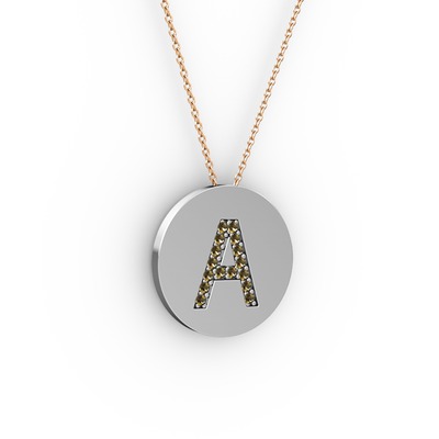 Dumanlı kuvars 14 ayar beyaz altın kolye (40 cm rose altın rolo zincir)