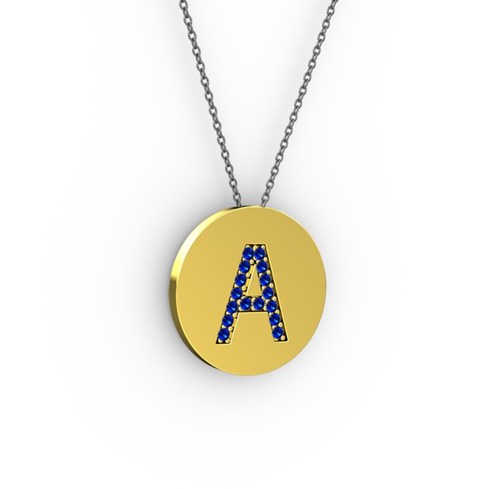 Lab safir 14 ayar altın kolye (40 cm gümüş rolo zincir)