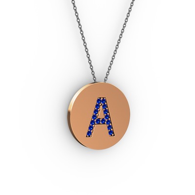 Lab safir 8 ayar rose altın kolye (40 cm gümüş rolo zincir)