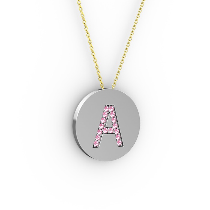 Pembe kuvars 18 ayar beyaz altın kolye (40 cm altın rolo zincir)