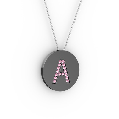 Pembe kuvars 925 ayar siyah rodyum kaplama gümüş kolye (40 cm beyaz altın rolo zincir)